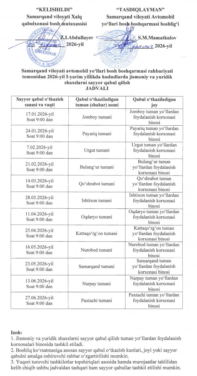 Samarqand viloyati Avtomobil yo‘llari xududiy boshqarmasi